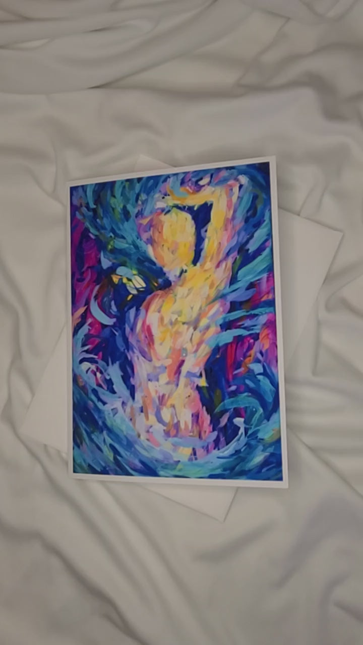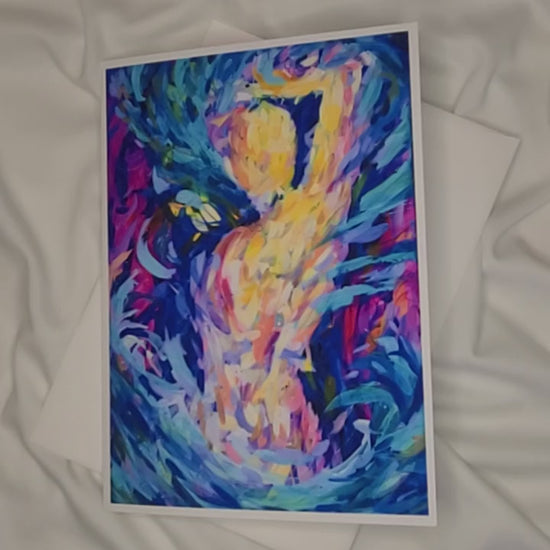 The back of the card reads: "This piece is about experiencing the joy of the uplifting energy all around you. Once you feel comfortable and at peace with your surroundings, you'll start to find it more often. This feeling comes and goes with the tides of your life, so you have to enjoy it every time you get the chance. From the Bold Women Series"